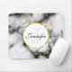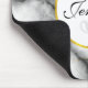 Modern White Grey Marble with Gold Ribbon Monogram Mouse Pad