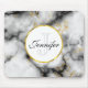 A mousepad with a classy, modern marbled pattern. White, black and smoky grey marble with thin ribbons of faux-gold swirls throughout the pattern.