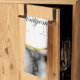 Modern White Grey Marble with Gold Ribbon Monogram Tea Towel