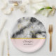 Paper plates with an elegant and modern marbled pattern. White, black and smoky grey marble with thin ribbons of faux-gold swirls throughout the pattern. A light pink gradient background beneath the marbled pattern. Personalise with your event text.