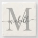 Modern White Grey Monogram Name Elegant Script Stone Coaster