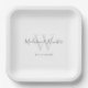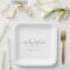 Modern White Grey Script Monogram Wedding Paper Plate