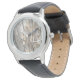 This elegant watch features a photo image of polished crystalline petrified wood in neutral tones of white, black, and grey. A fun, modern gift for women and men alike.