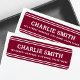Burgundy or custom colour return address labels with white lines top and bottom and your name in a white, bold font with the return address below. Fonts and colours can be customised with the design tool.