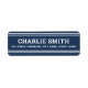 Dark blue or custom colour return address labels with white lines top and bottom and your name in a white, bold font with the return address below. Fonts and colours can be customised with the design tool.