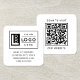 A clean square business card featuring a crisp white background with space for your custom logo, business name, location, website, and phone number on the front, paired with a "Scan To Visit Our Website" QR code on the back. Perfect for small businesses, corporate networking, trade shows, and modern professional brands looking to drive traffic to their site. All text, logo, and QR code fields are fully customisable.