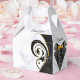 From chic, modern black abstract on a white marble texture with natural grey-black underexposed tulips thank you favour box