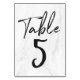 Add a stylish touch to your wedding reception with custom table cards. The wedding table cards feature a white marble background and a trendy script font. Additional numbers can be found in the collection below.