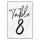 Add a stylish touch to your wedding reception with custom table cards. The wedding table cards feature a white marble background and a trendy script font. Additional numbers can be found in the collection below.