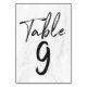 Modern White Marble Script | Table Number Card 9
