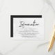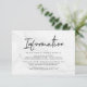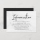 Stylish and modern wedding information enclosure cards featuring trendy black script font, white marble background, and placeholders for your custom wedding details. The back of the wedding information cards can be changed to a colour of your choice with the Customise tool.