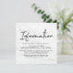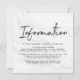 Stylish and modern wedding information enclosure cards featuring trendy black script font, white marble background, and placeholders for your custom wedding details. The back of the wedding information cards can be changed to a colour of your choice with the Customise tool.