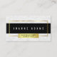This minimalistic design features a white marble background, golden frame with a black strip in the middle to showcase your name, title or business name and contact information. Suitable for any profession and easy to customise.
