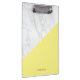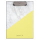 Modern White Marble with Yellow Block Personalised Clipboard | A modern clipboard featuring white marble with pastel yellow block accent. Personalise this clipboard by adding your own details. Other colours are available.