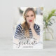 Modern minimalist black and white script graduation with 5 photo grid collage.