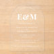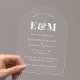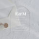 Arch-shaped clear acrylic save the date wedding announcement that features your monogram initials in bold and elegant white typography. Customise your save the date details in modern white lettering.