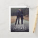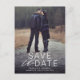 This chic, minimal save the date features simple typography and showcases a large photo of the engaged couple. On the front of the postcard, a full photo appears with a white text overlay that reads "Save the Date," along with the couple's names, wedding date, and wedding location. Add additional wedding details (such as the wedding website) to the back of the postcard.