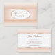 Make a lasting impression with this elegant and quality business card design featuring a pastel pink ombre with an elegant shimmery oval rose gold decor frame and border on a white background.