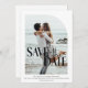 Modern, White Photo-Save the Dates Card. Personalised in minutes. Add your data and you can choose the font, colour, size and position individually by clicking on "Personalise more".