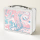 Modern White Pink Blue Glitter Marble Metal Lunch Box
