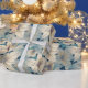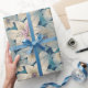 Modern White Poinsettia Christmas Blue Pattern Wrapping Paper