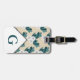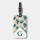 Modern white ranunculus flowers and green foliage luggage tag with personalised initial letter in white.
