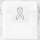 Modern White Ribbon Awareness on Checkers Print Square Sticker