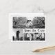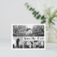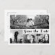 Customise this stylish modern horizontal Save the Date wedding postcard designed with lovely black script text on clean white. Replace the four template image collage with your favourite 4 photos. One of the images is wide horizontal panoramic photo and the other three are smaller. For best results use high resolution photos. Also change all the template information on both sides with your own. This design has a wording: "We're getting married! (With your date of marriage) And would love for you to save the date to be able to share in our special day. Formal invitation to follow." you can change the words with your own.