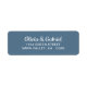 Modern white Script. Blue Wedding Return Address Label
