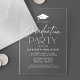 Modern graduation party invitations featuring a white graduation cap at the top of the design with "Graduation Party" displayed in white script typography on a frosted or transparent acrylic background. Personalise the minimalist graduation party invitation with the graduate's name and party details. The acrylic graduation party invite is perfect for celebrating both high school and college graduates.