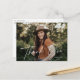 Modern photo graduation thank you postcard featuring the graduate's photo with "thank you" in a handwritten white calligraphy script overlay. Personalise the front of the graduation thank you postcard by adding the graduate's name and graduation year. The photo thank you postcard reverses to display your return address and custom message.