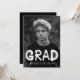 Urban, trendy photo graduation party invites featuring the graduate's photo with "Grad" in a white, spray paint typography style. Personalize the front by adding the graduate's name, school name, and graduation year. The modern graduation announcement reverses to feature your graduation party details in white against a solid black background or color of your choice.