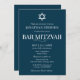 Modern White Typography On Blue Bar Mitzvah Invitation