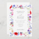Beautiful watercolor floral artwork ideal for spring or summer wedding. A whimsical yet elegant design with modern typography script in charcoal grey with easy to personalise templates. Wildflower paintings include vibrant red poppies, cornflowers, cosmos flowers, forget me nots and billy buttons in purple, pink, sage green, teal, orange and blue. Original botanical artwork by artist Catherine Sweetman