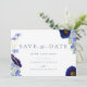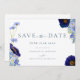 Beautiful elegant hand painted watercolor summer wildflowers in navy blue, cornflower blue, purple, green and yellow hues wedding save the date card. Flowers including cosmos, cornflowers, poppies and forget me nots with foliage. Easy to use template with modern elegant typography script. Perfect for a unique floral botanical navy blue themed summer or spring wedding. Unique original artwork by artist Catherine Sweetman. Matching wedding supplies available in the modern wildflower blue wedding suite.