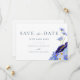 Save the date in elegant style with unique hand painted wildflower watercolor artwork and beautiful typography script that’s easy to personalise with bride and grooms names and the wedding date. Modern watercolor wildflower wedding save the date card for a boho floral summer wedding. Unique meadow flowers including cornflowers poppies, cosmos and forget me nots with delicate foliage painted by artist Catherine Sweetman in cornflower blue, blush blue, navy blue, purple and green hues. Ideal for the botanical garden or outdoor spring or summer garden meadow wedding. Find matching items in the modern wildflower Blue wedding suite
