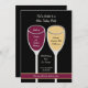 This distinctively modern wine tasting party invitation features a glass of burgandy and a glass of white wine and adds a formal touch to your wine tasting party. Copyright Henis House of Paper