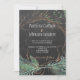 Elegant winter wedding stylish invitation template on dark grey chalkboard featuring modern winter branches and pine boughs wreath and natural green watercolor splashes. Fill in your information in the spots, You can choose to customise it further changing fonts and colours of lettering. --------- The invitation is suitable for elegant trendy winter night rustic country, evergreen or Christmas weddings. -- If you need assistance in customising it, please contact me!