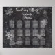 Modern winter snowflakes chalkboard table seating chart. Stylish, elegant and original black chalkboard with white snowflakes background. A black and white elegant wedding theme perfect for winter wonderland, Christmas wedding theme.The text is fully customisable