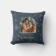 Modern Winter Snowflakes Photo Navy Christmas Cushion
