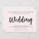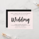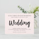 This fresh and modern wedding invitation features trendy black handwritten script on a chic blush pink background, with a rich, black back.