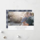 Modern, simple and minimal holiday photo card features your favourite horizontal or landscape orientated photo with a thick white bottom border. Your custom greeting appears in modern midnight blue lettering (shown with "Joyous Hanukkah"), with your family name or names beneath. A subtle snowflake pattern is overlaid over the edges of your photo for festive appeal. Cards reverse to a wintry snowflake pattern in matching midnight blue and white.