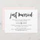 This fresh and modern post-wedding brunch invitation features trendy handwritten script that says "just married," for a chic, black and white look with a blush pink back.