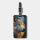 Cool luggage tag with a close-up of a wolf at sunrise, night sky in background. This can be cusotmized with a name/custom text along the right side.
