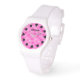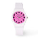 Modern women's watch with neon pink pixelated dial. Personalised mosaic pattern watch for ladies. Trendy modern fashion print with custom name or stylish monogram. Cool Birthday or Christmas gift idea for women and teen girls. Make your own for mum, mother, daughter, sister, aunt, wife, girlfriend etc. Background colour can be changed. Digital typography template for name or monogram.