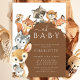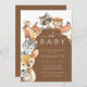 This baby shower invitation features a variety of woodland animals framing a modern arch in brown, making it perfect for a gender-neutral shower. The deer, bunny, fox, beaver, wolf, owl, and racoon add a touch of whimsy and fun, while the elegant arch design keeps the invitation looking polished and sophisticated.