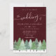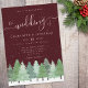 Celebrate your love with the enchanting beauty of nature in this Winter Woodland forest deep Burgundy blush pink Wedding Invitation. Featuring blush pink whimsical elegant modern script hand-painted watercolor fir trees in a snowy evergreen forest against a deep burgundy background, this elegant design blends rustic woodland charm with modern sophistication.