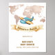 Modern World Map Airplane Boy Baby Shower Welcome Poster