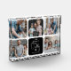 Modern Glass Photo Block Display for Daddy! Design features a photo collage consisting of 5 curved edged square pictures and a coloured block that can be changed to any colour with the text 'The World's Best Daddy', a cute little white heart and name/s.