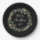 Modern Wreath and Script | Merry Christmas Paper Plate